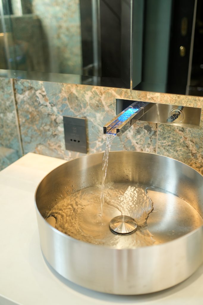 A place to be entertained and to entertain, in grand style. The two adjacent bars — a gentleman’s bar and the ladies’ champagne bar — reflect the unique personalities of the husband and wife team. Both bar spaces have been curated to provide each host with an environment that offers seven star entertainment to their guests.