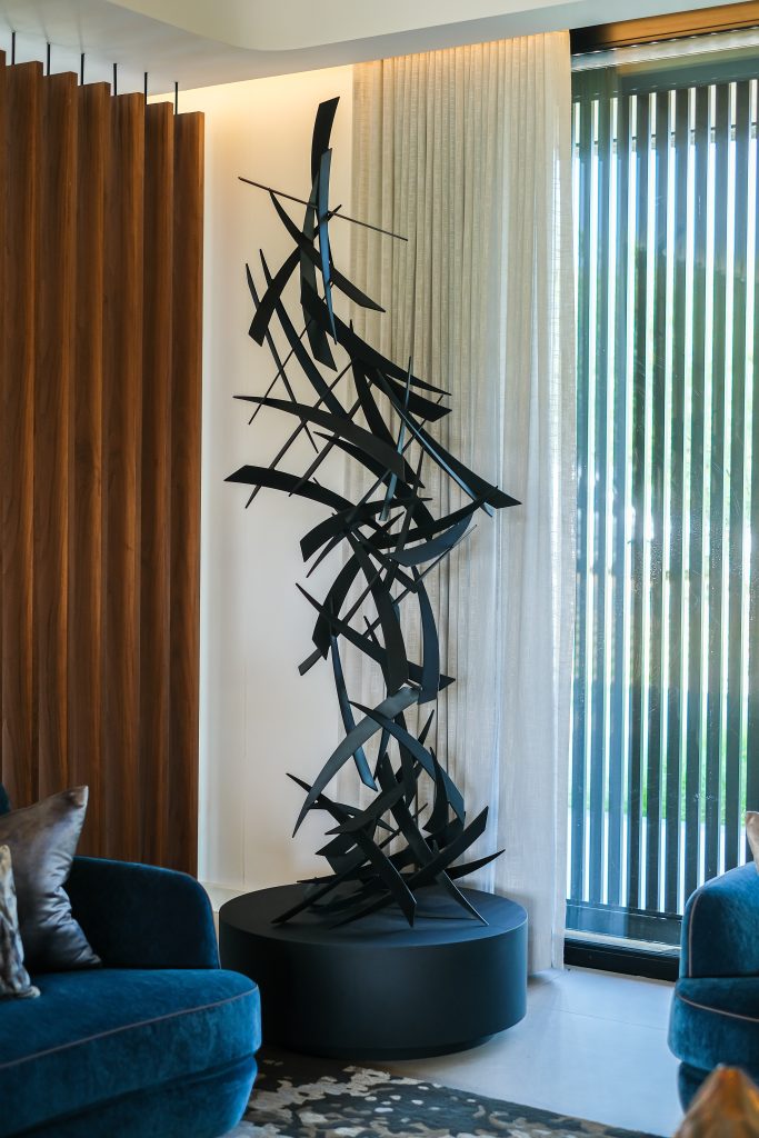 SpiSouLi Manor’s soul finds voice through the many signature pieces skilfully placed in almost every room – from a statement-making baby grand piano, through to art pieces painted or created by leading local South African artists. These showstoppers include custom steel sculptures and hand blown glass – all designed and built to fit specific spaces throughout the twostorey mansion.